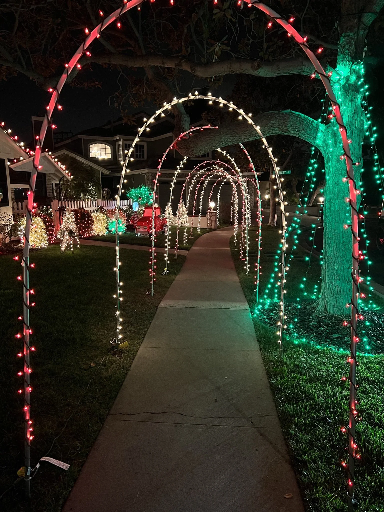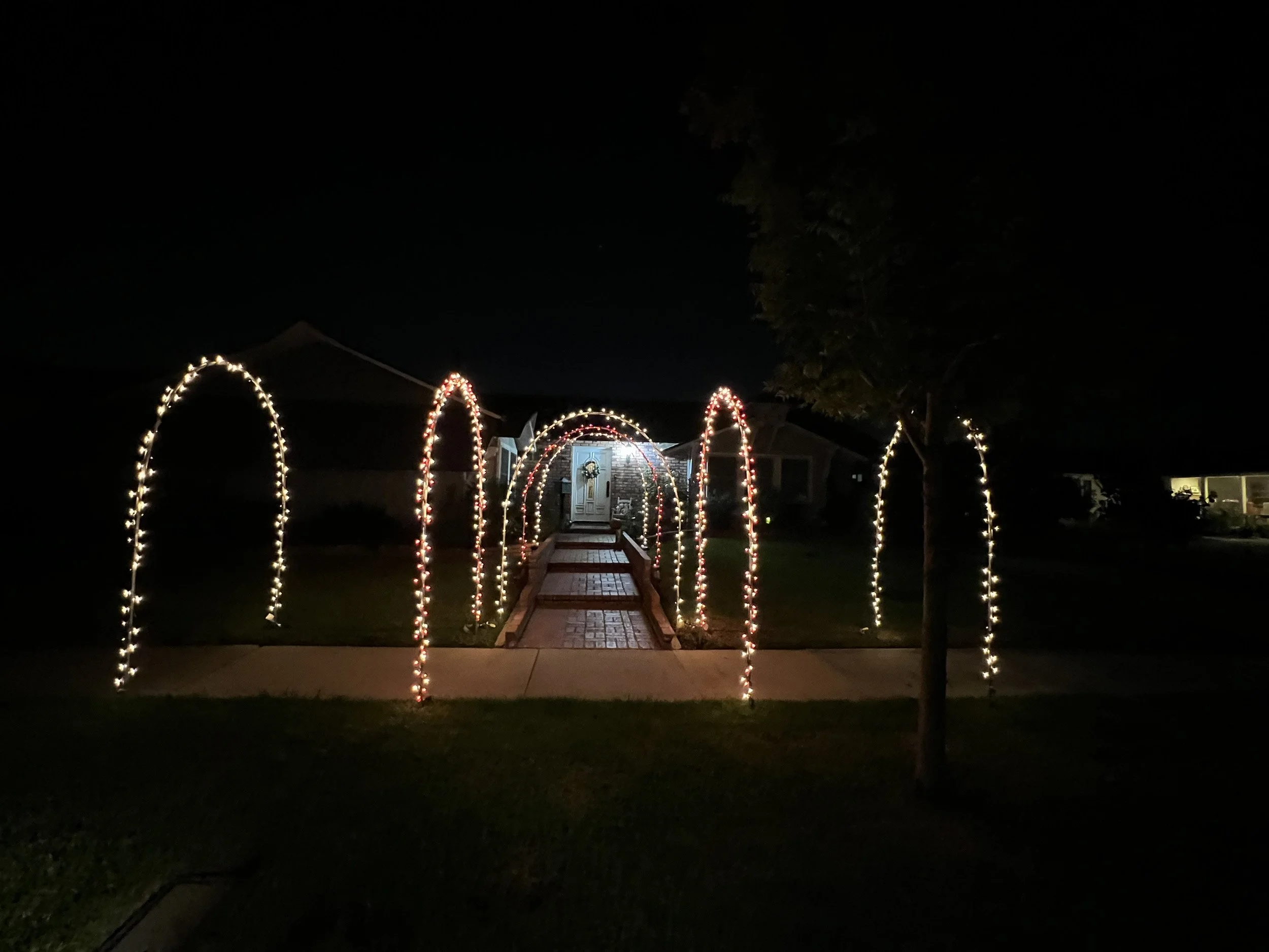 Brighten up your holiday decor with our Candy Cane Christmas Archways! Featuring red and white alternating lights, each archway is $72, including materials and installation. Perfect for a festive touch!